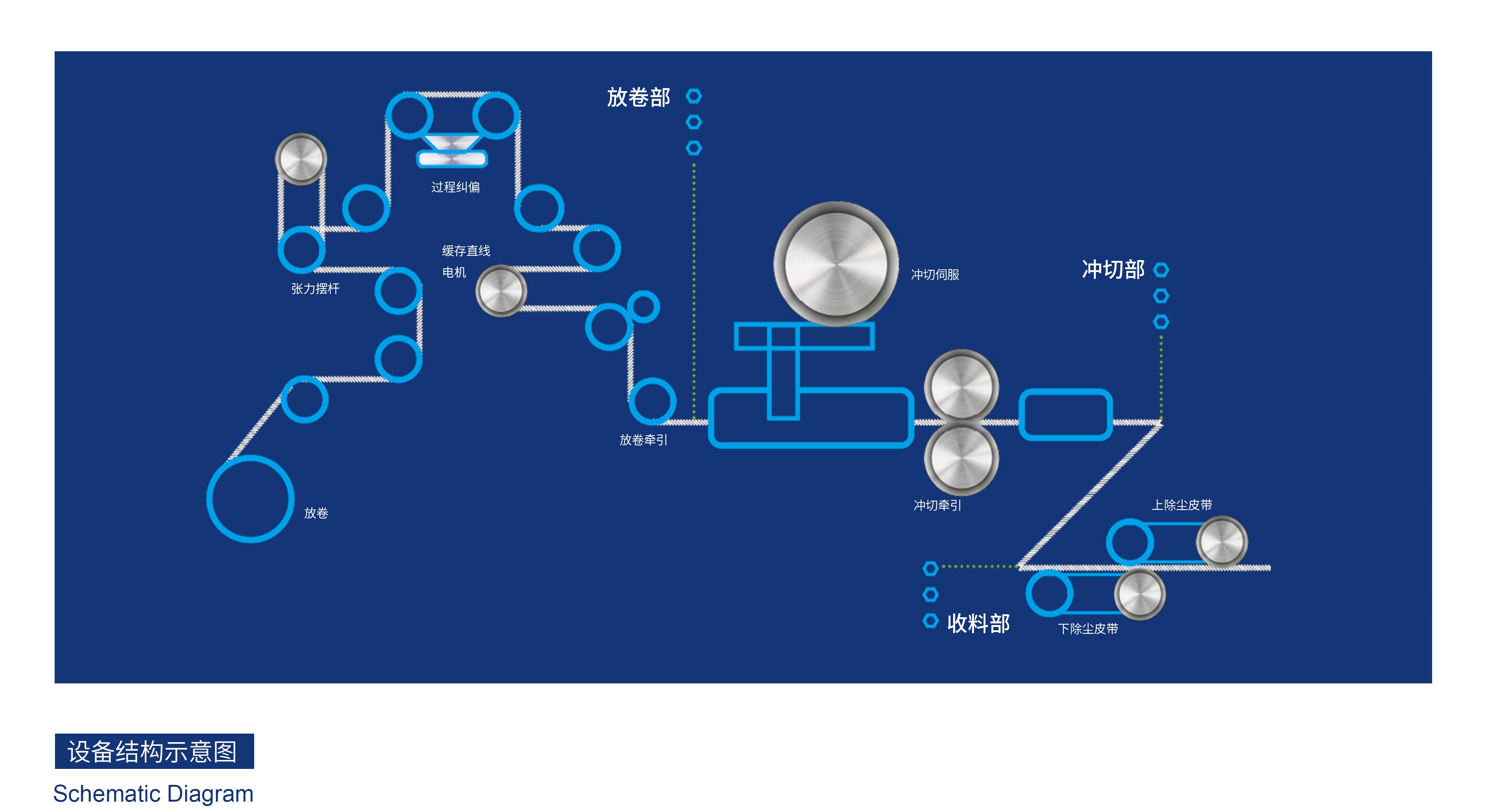 锂电池由于重量轻、寿命长、自放电率很低等优势,逐渐替代传统铅酸电池、镍氢电池成为航空行业、电动车行业、医疗行业及日用电子产品等行业的主流。 全自动锂电池极片模切机用于锂离子电池带极耳的正/负极片冲切成形,通过双缓存机构,采用五金模具以停切方式高速冲切,使极片边沿成形。该设备解决了传统卷绕工艺的焊接极耳难题和极片边缘掉边现象,使电池更安全、容量更高、更稳定;同时提高了整机冲裁极片效率。