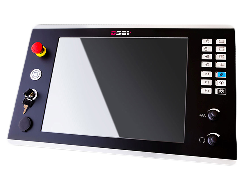 OSAI操作面板可任意搭配各型号OSAI控制器以呈现不同应用的操作界面。OSAI不仅有简单的触摸屏显示器、经济型操作面板和高端模块定制型操作面板,也能提供无线遥控操作手柄和功能强大的示教器以满足客户灵活操控的需求。