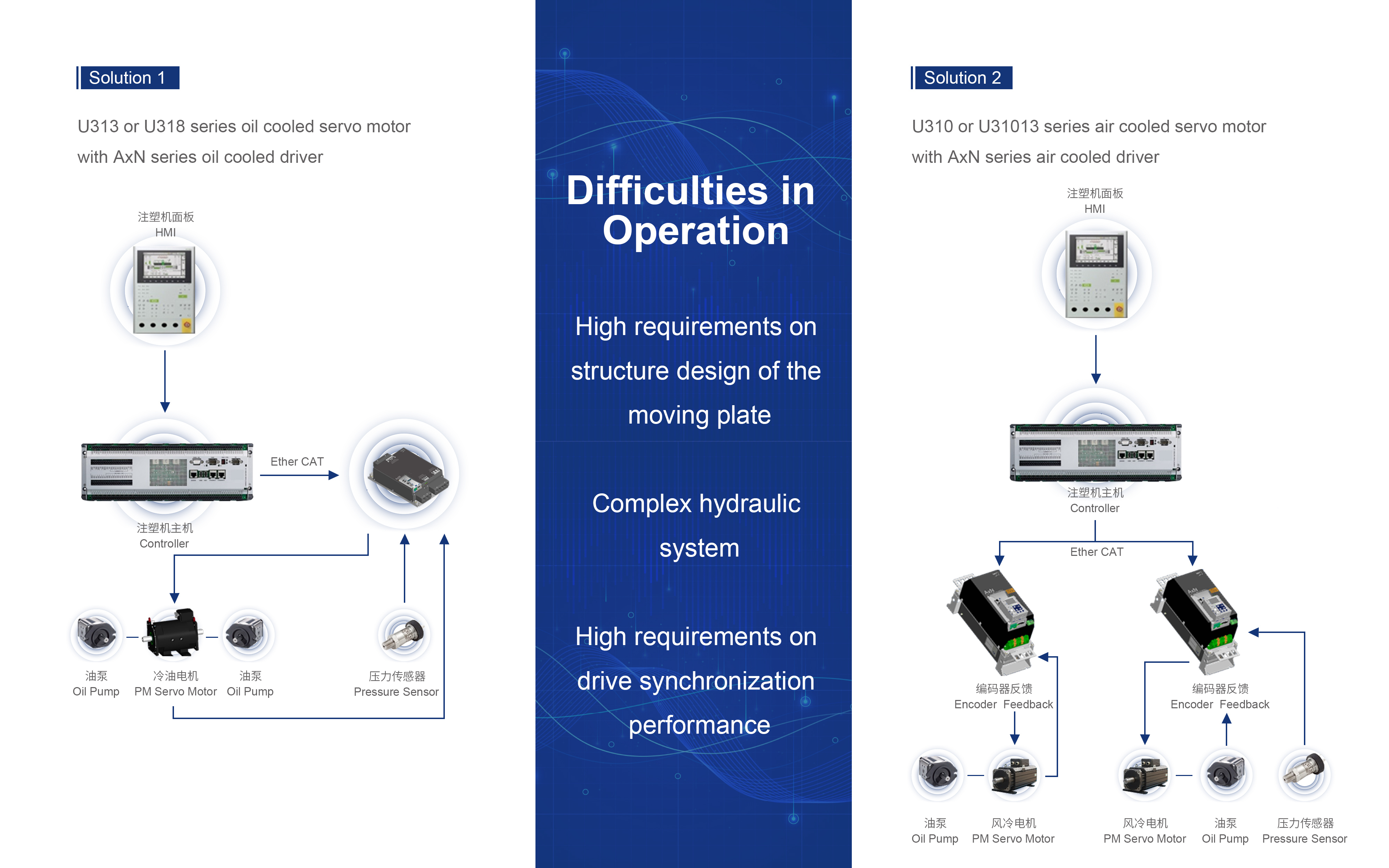 ULtractIII series U310 or U318 oil-cooled servo motors (double output shafts) with AxN series oil-cooled drives