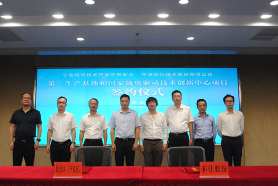 On the afternoon of August 11, 2020, the signing ceremony for the third production base project and the national electric drive technology innovation center construction project was held in the Administrative Center of Beilun District, Ningbo.